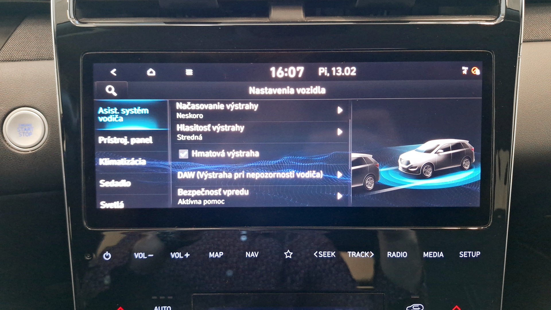- Sledovanie a upozornenie na opustenie jazdeného pruhu